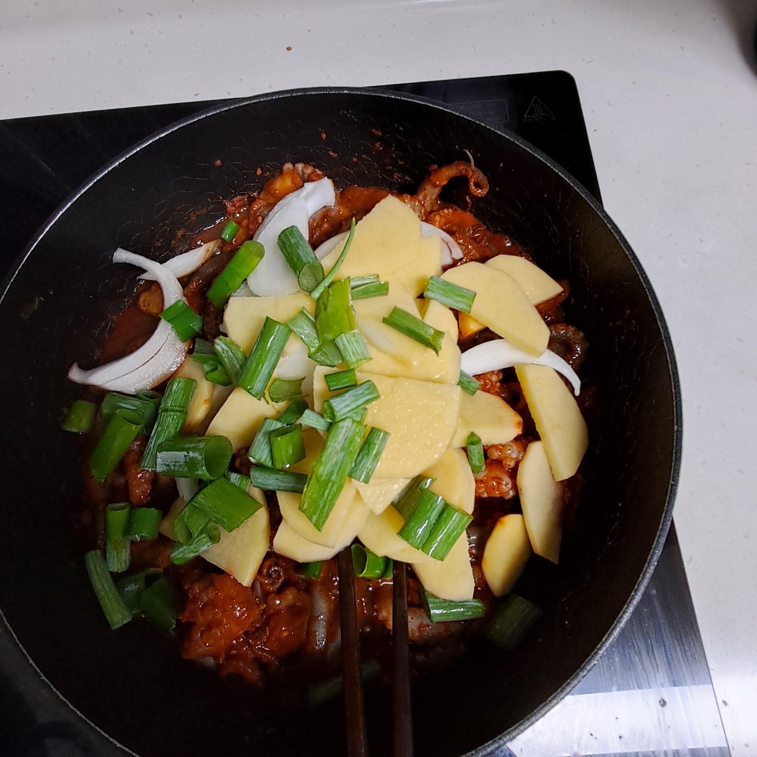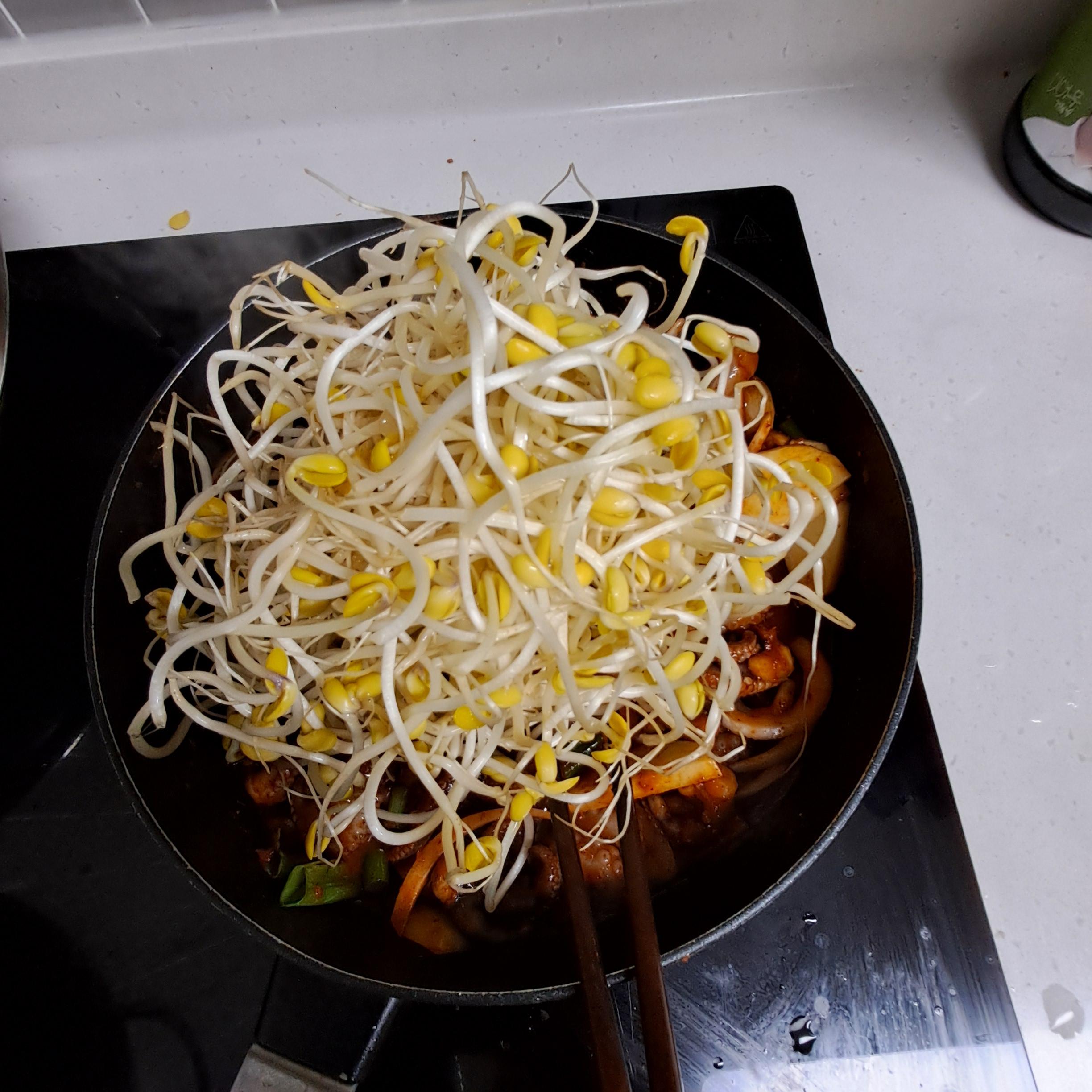 - 아삭한 콩나물을 함께 넣으면 식감이 훨씬 풍부해집니다(콩나물의 아삭한 식감을 위해 쭈꾸미가 거의 익었을 즈음 위에 올려 한번 뒤적거려 줍니다)